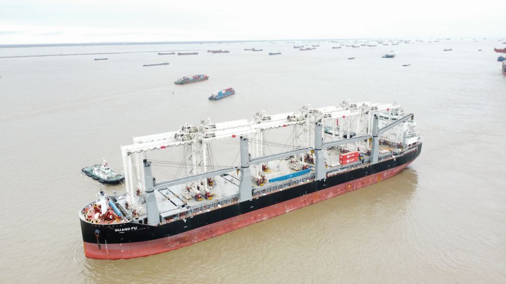 值得一提的是,該機型還具備逆向裝船功能,既可通過抓斗抓取碼頭后方物料進行裝船作業,也可利用集裝箱翻轉功能實現快速裝船,真正實現“一機多用”,優化港口資源利用率。